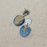 Our Cape earrings are carefully crafted from bonded sand combined with blue resin, emulating the geographic shape of a cape protruding into the ocean. Each earring dangles on an allergy-friendly stainless steel ear post featuring delicate topographic lines.&nbs...