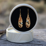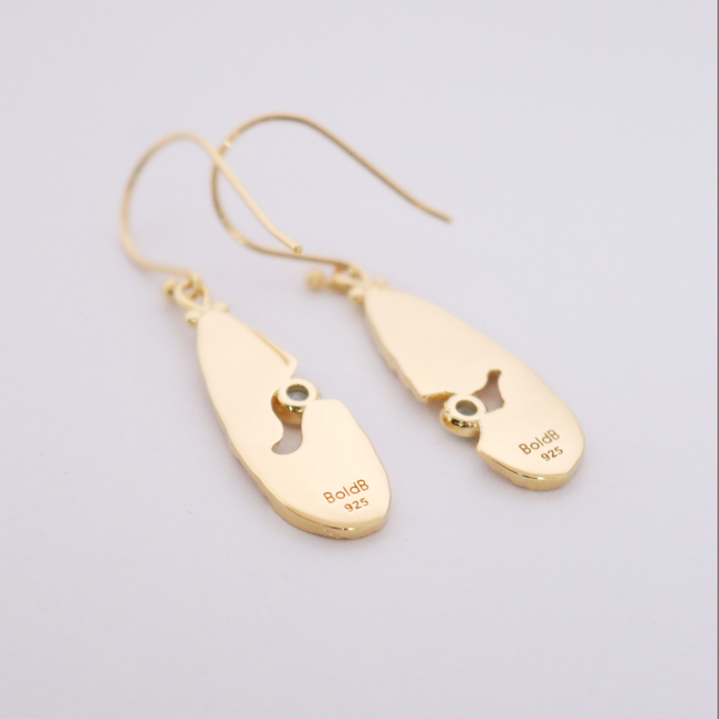 Each earring measures in height 30mm/ 1.2’’ and 10mm/ 0.4’’ in width and dangles on a 15mm/ 0.6’’ long French hook.