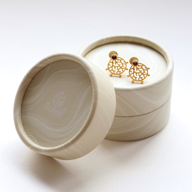 Our designs arrive packaged in a beautiful complementary round gift box with a dark velvet inlay, which is ideal for gifting or storing your jewellery.