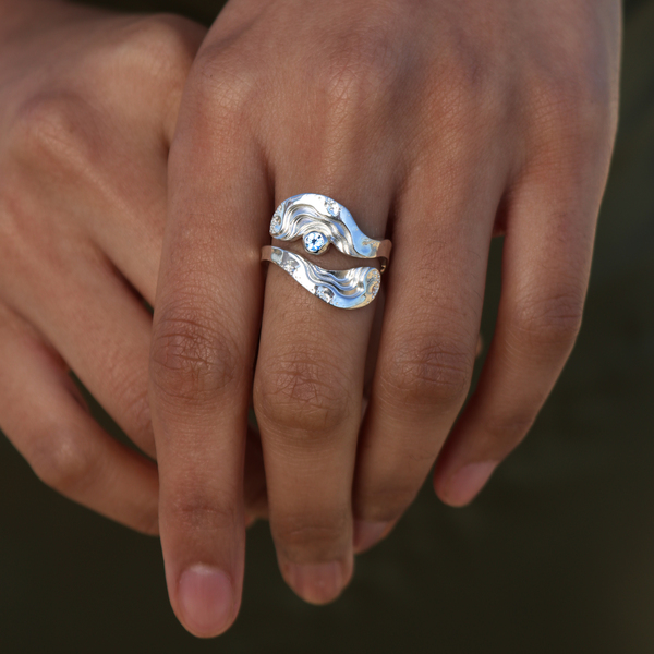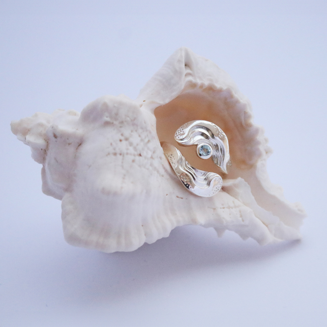 The Serenity Collection draws inspiration from the serene beauty of the ocean and its shores. Our adjustable Sanctuary ring has been carefully crafted by Balinese silversmiths from environmentally friendly recycled 925 sterling silver. The design features a beautiful light blue Topaz gemstone, evoking the shimmering essence of water.